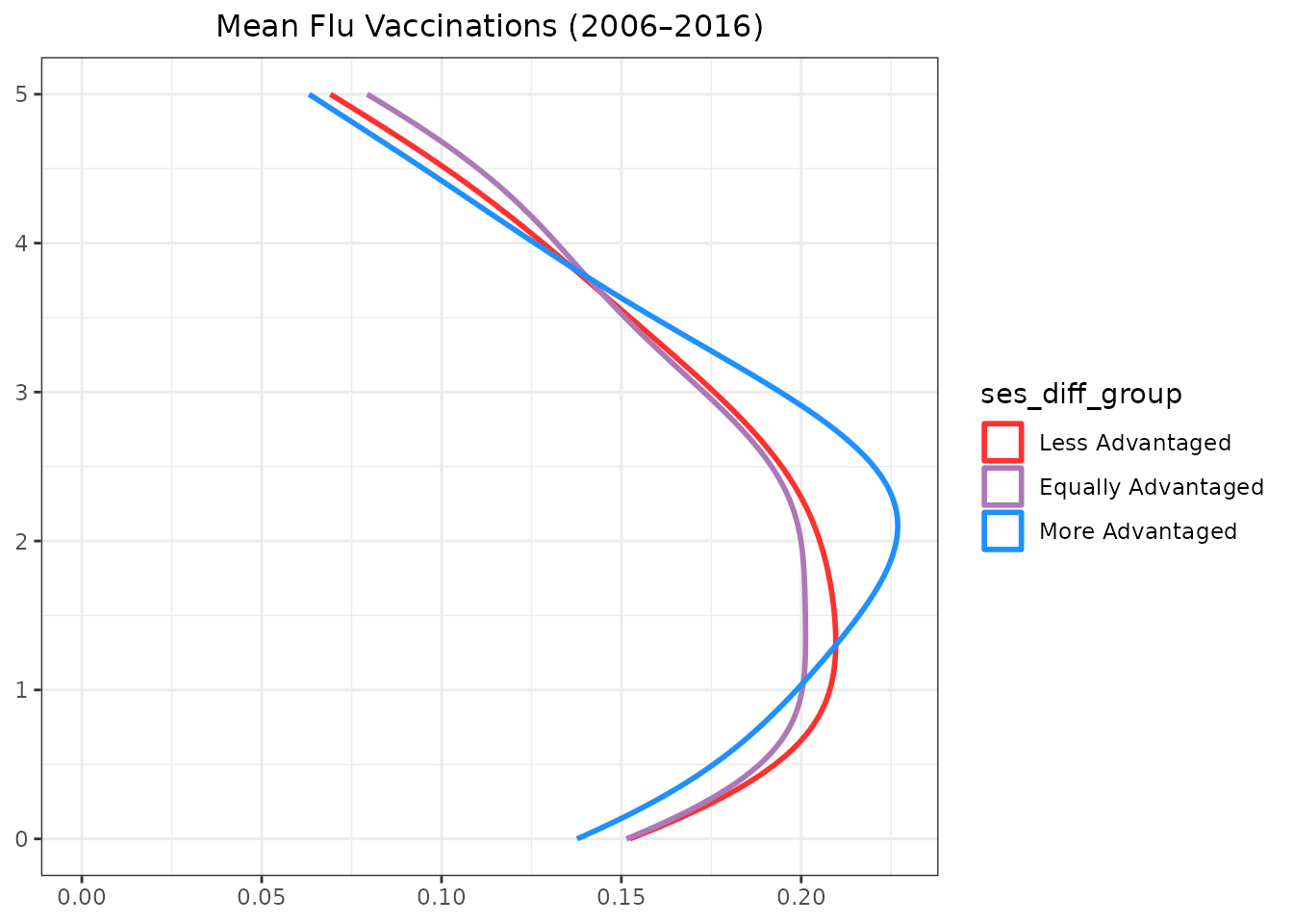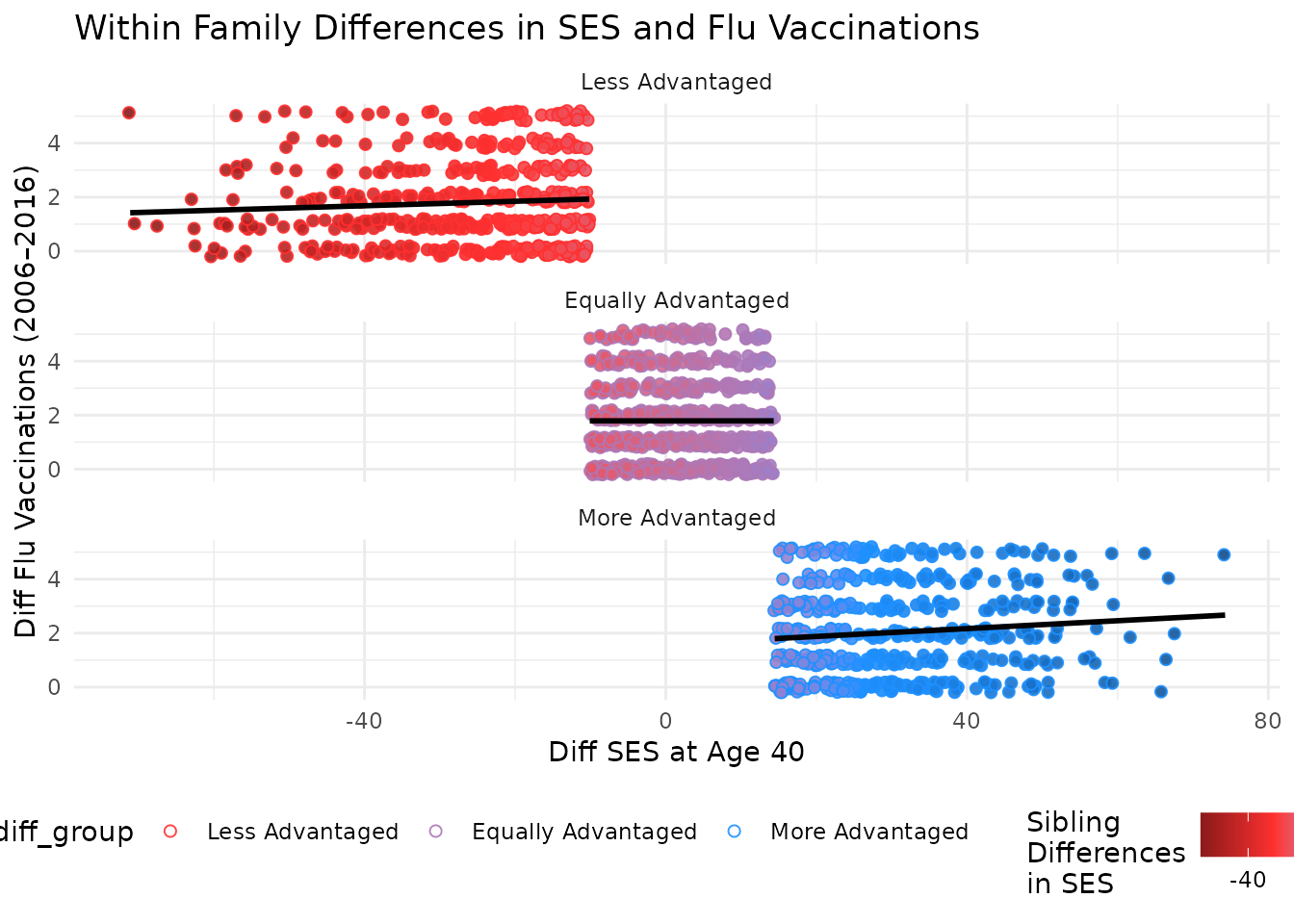 top = textGrob("Sibling Differences in SES and Flu Vaccinations",